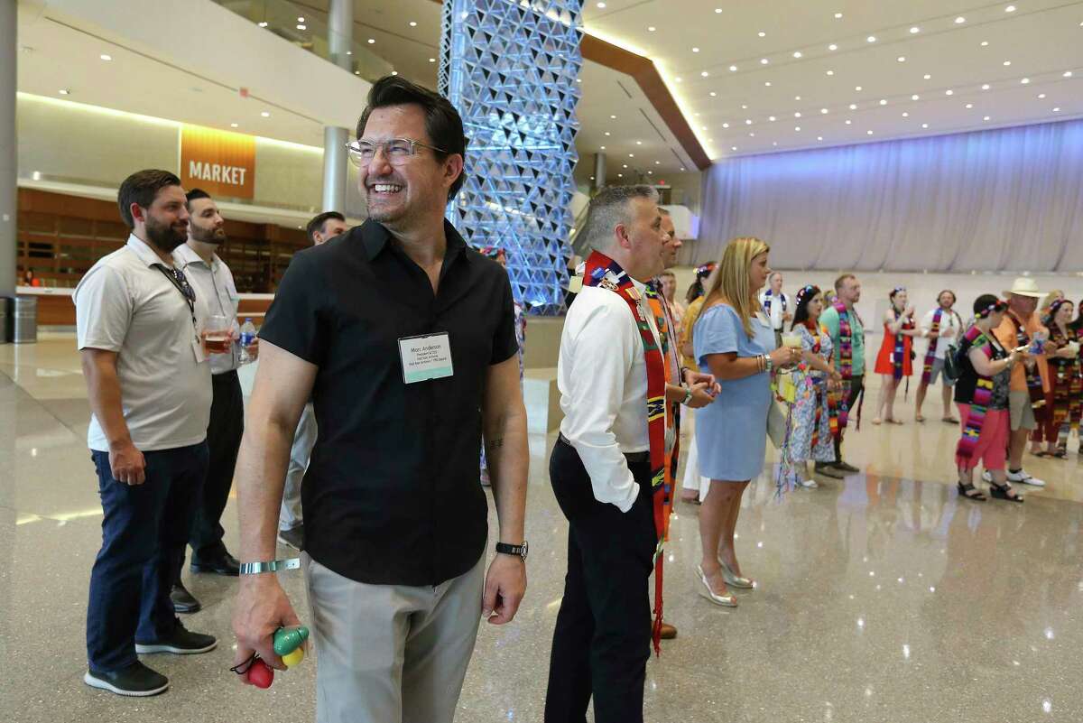 Marc Anderson, the brand new CEO of Go to San Antonio, smiles as he joins trade affiliation officers from across the U.S. on a tour.
