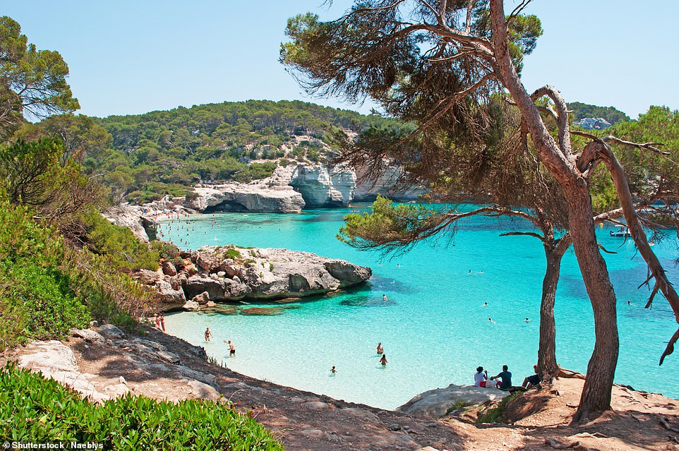 All bases lined: Menorca’s Cala Mitjana seaside, which is frequent with guests and locals alike