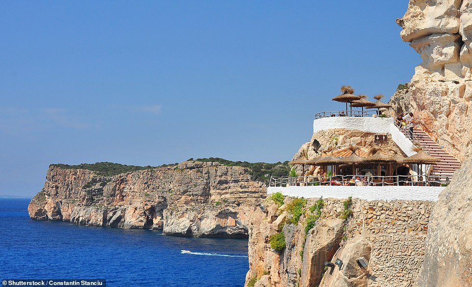 The spectacular Cova d’en Xoroi bar, pictured, is carved out of a cliff cope with in Menorca and supplies lovely sights of the Med